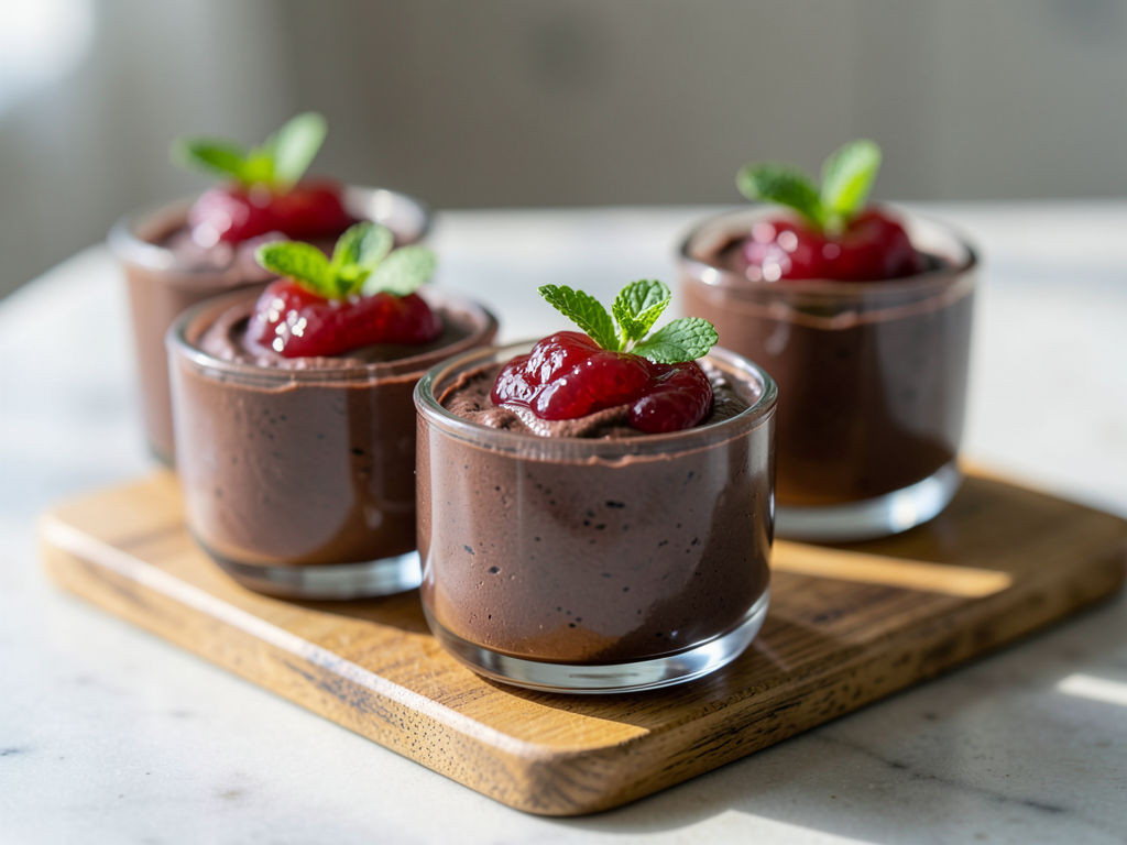 Indulge in the blissful delight of mini chocolate mousse cups, each bursting with rich chocolate flavor! These delectable treats are a perfect everyday dessert, elegantly presented and topped with a vibrant fruit jam. Feel free to experiment with your favorite jams and even try swapping in different chocolate percentages for a unique twist. Let your creativity shine as you create these charming little cups of happiness!