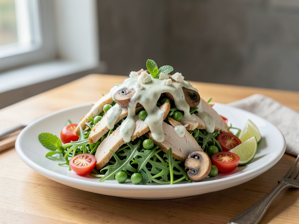 Mint Yogurt Chicken Salad with Peas and Mushrooms
