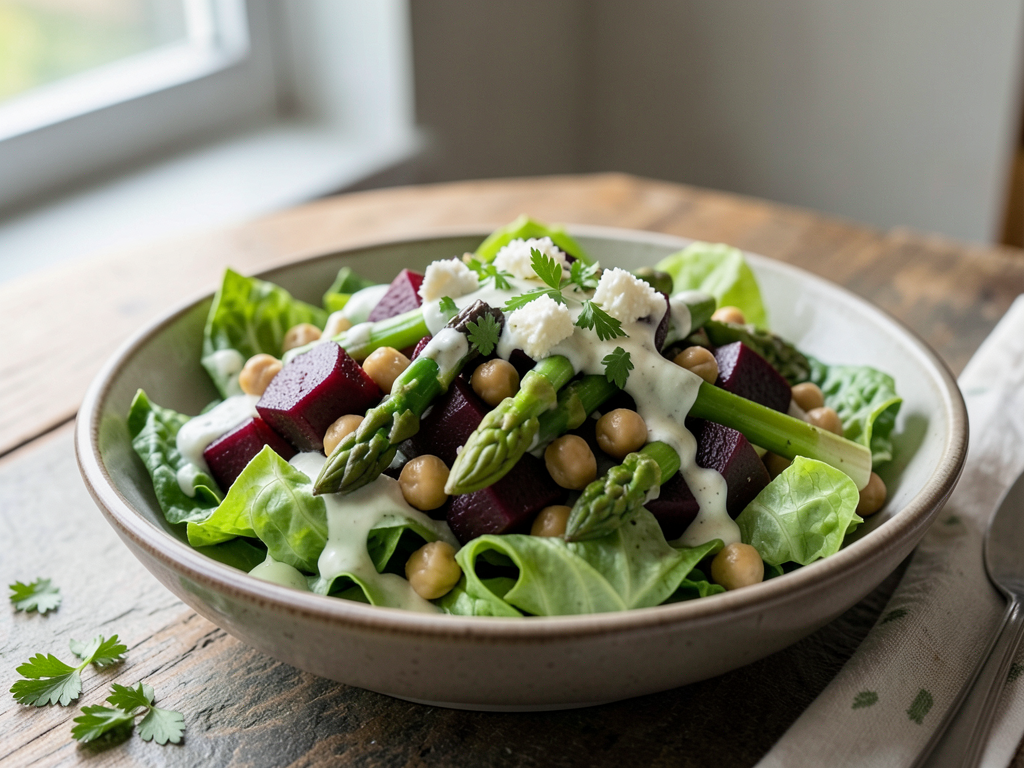 Mint Yogurt Chickpeas Salad with Beets and Asparagus