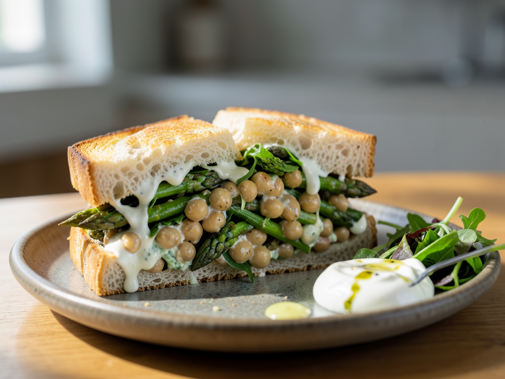 Mint Yogurt Chickpeas Sandwich with Asparagus