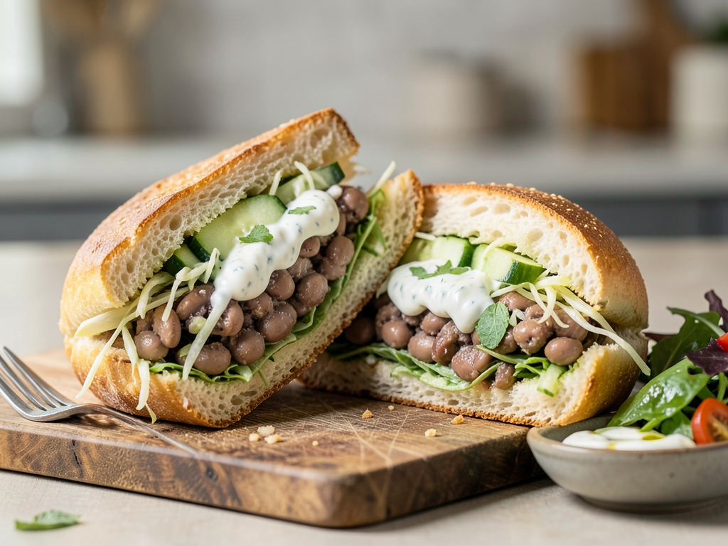 Mint Yogurt Kidney Beans Sandwich with Cabbage