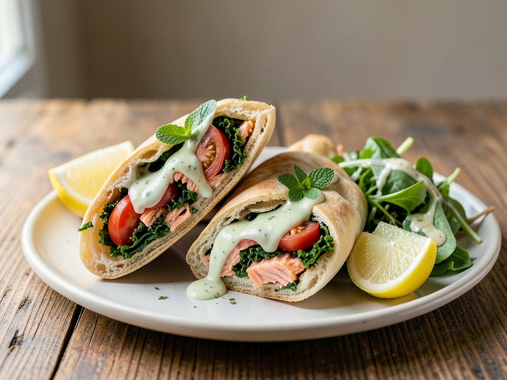 Mint Yogurt Salmon Stuffed Pita with Tomatoes