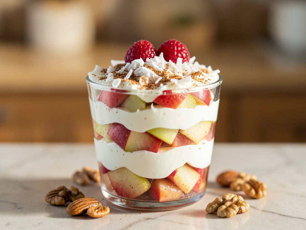 No-Bake Apple Fruit Compote Cup with Coconut Flakes