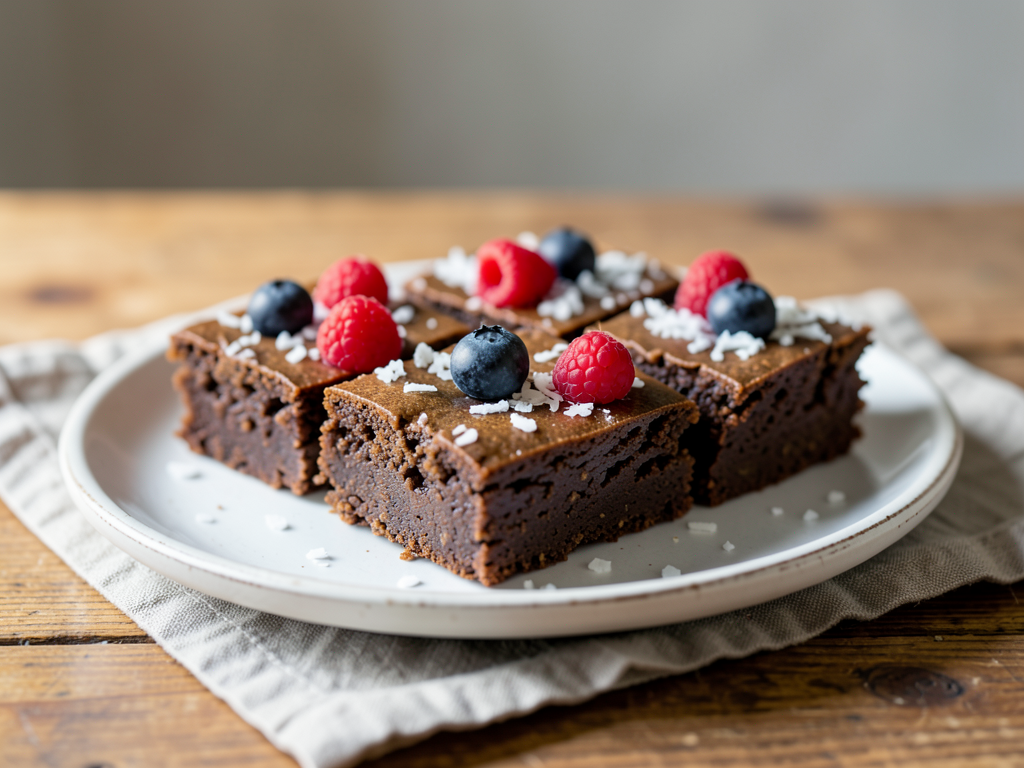 6. Top each brownie with fresh berries and a sprinkle of coconut flakes before serving.