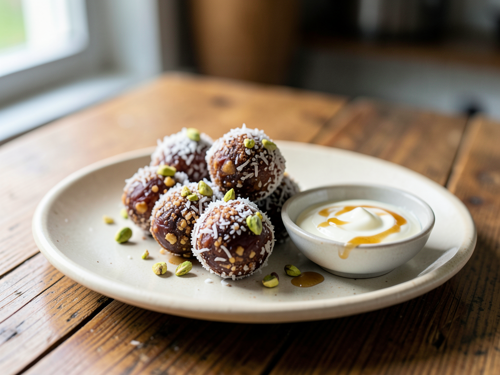No-Bake Coffee Date Candy Bites with Yogurt Cream