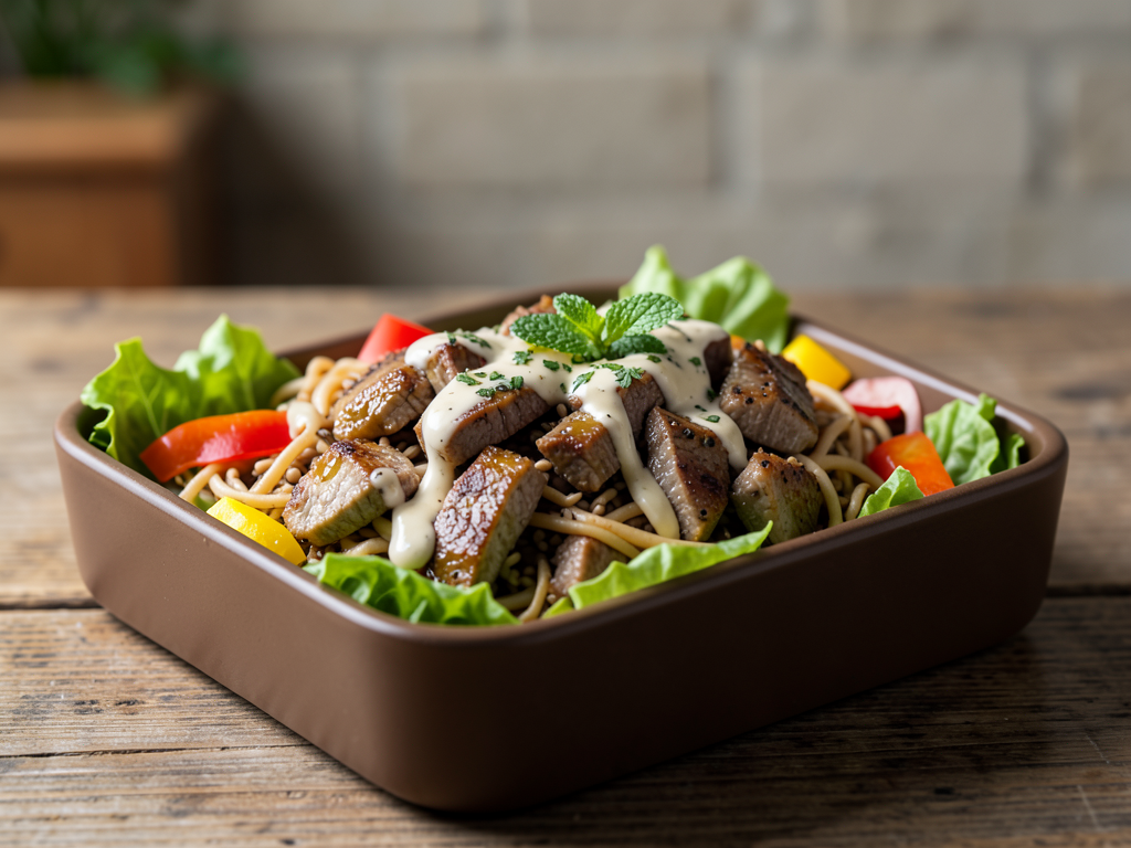 Orange Cumin Lamb Buckwheat Noodles Bento Box