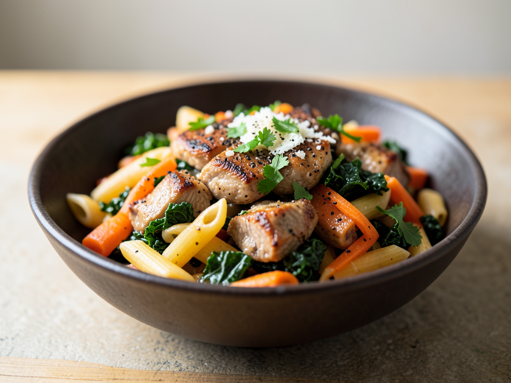 Spinach or Swiss chard can also replace kale, while any favorite pasta shape works well here.
