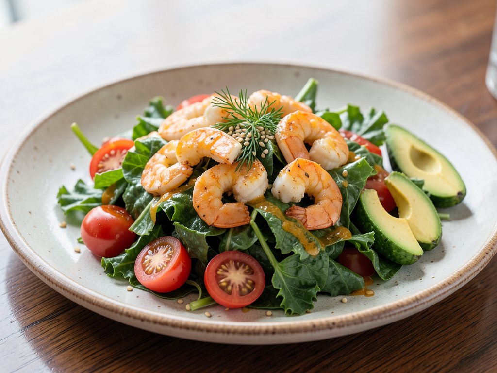 Orange Cumin Shrimp Salad with Kale and Tomatoes