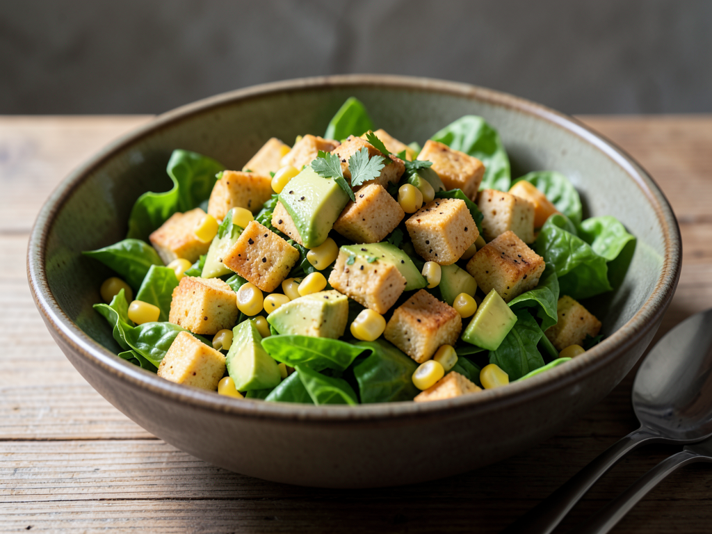 - Once the tofu is done, add it to the salad mixture. Pour the dressing over the salad and toss gently to combine, ensuring everything is well coated.
