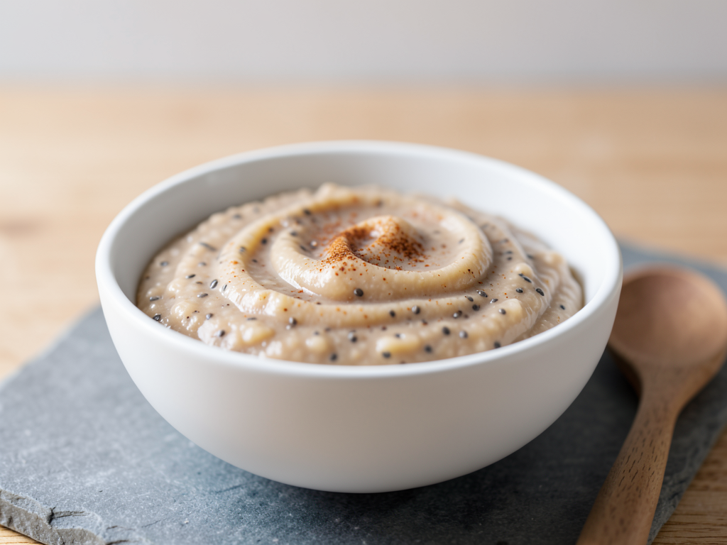 This delightful Pear and Chia Baby Meal is a wonderfully smooth and creamy puree, perfect for your little one starting their culinary journey. With soft lumps for texture, this dish combines the natural sweetness of ripe pears with the nourishing goodness of chia seeds. The gentle flavor and simple ingredients make this puree easy for babies to enjoy, allowing them to explore new tastes in a safe and fulfilling way. Feel free to adjust the consistency with water or breast milk to suit your baby's preferences!