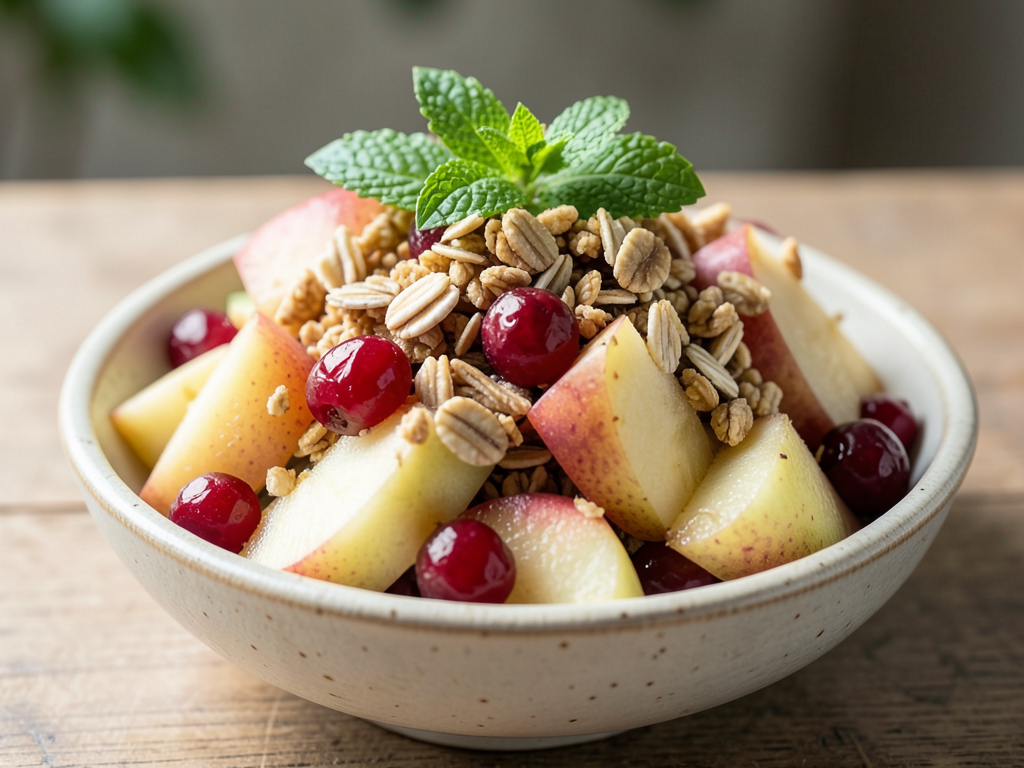 Pear and Cranberry Fruit Bowl with Granola