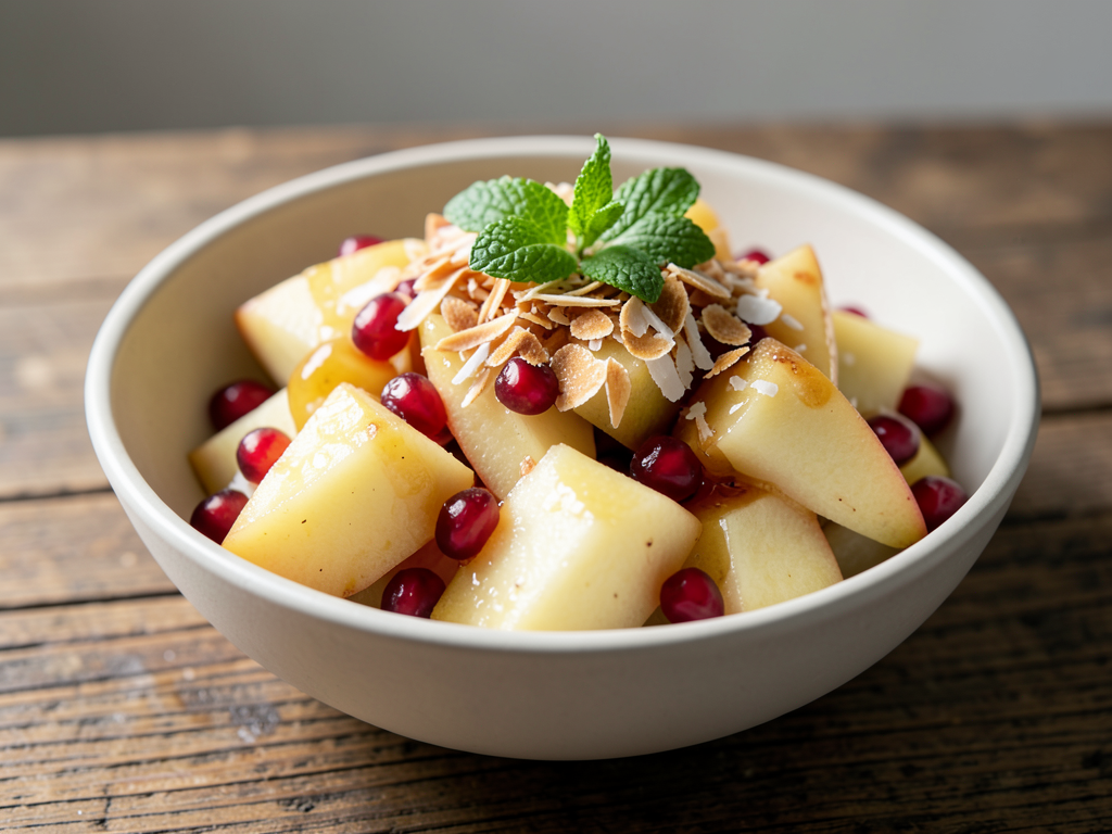 Pear and Pomegranate Fruit Bowl with Coconut Flakes
