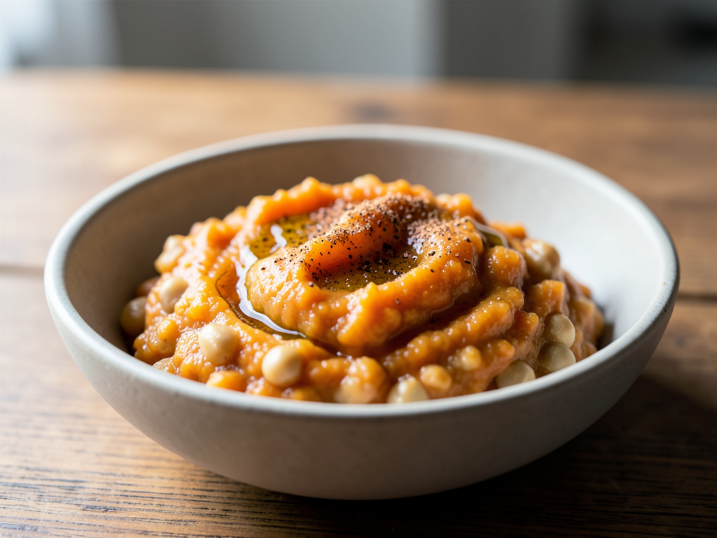 - Transfer the pumpkin and chickpea mixture into a blender or food processor. Blend until you achieve the desired texture, adding more water or broth if needed for a smoother consistency.