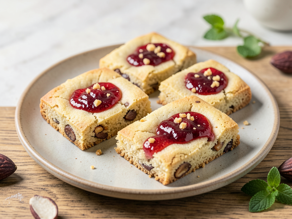 - Let the cookies cool on a wire rack for 10 minutes. Once cooled, spread a thin layer of fruit jam on top of each cookie.