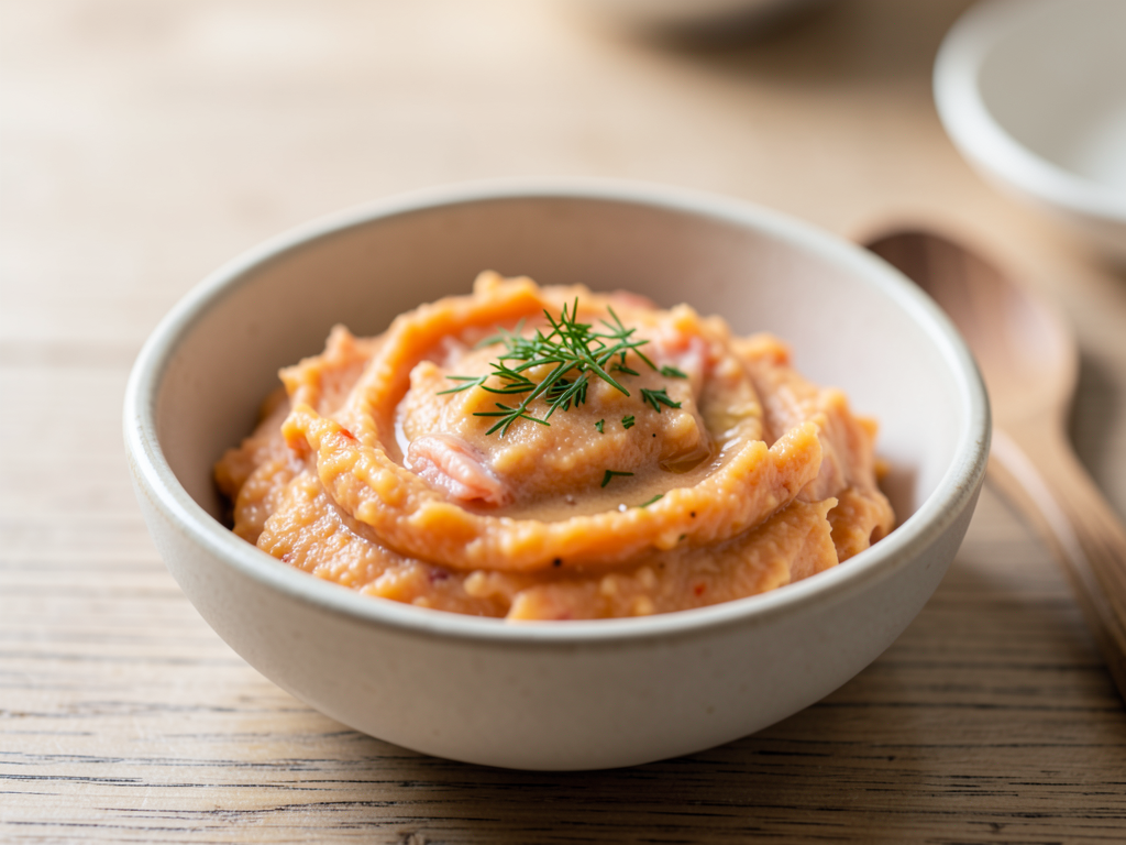 Introducing a delightful and nutritious Salmon and Sweet Potato Mash that’s perfect for your little one! This dish features a smooth and creamy texture, blending tender salmon with sweet potatoes for a mild and comforting flavor. It’s ideal for babies aged 10 to 12 months, making mealtime enjoyable and safe with its easy-to-eat consistency. Feel free to adjust the seasoning to suit your baby's palate while ensuring all ingredients are soft and gentle.