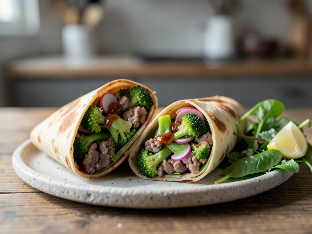 - Lay the whole wheat wraps flat. Divide the beef and vegetable mixture evenly among the wraps.