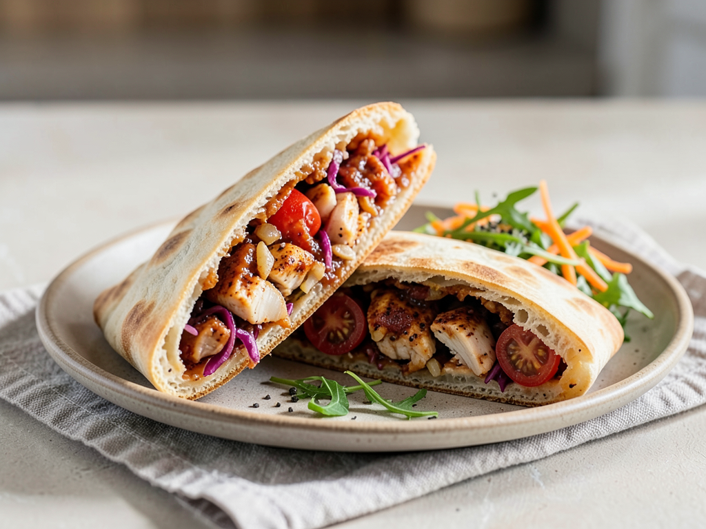 Smoky Chili Chicken Stuffed Pita with Cabbage