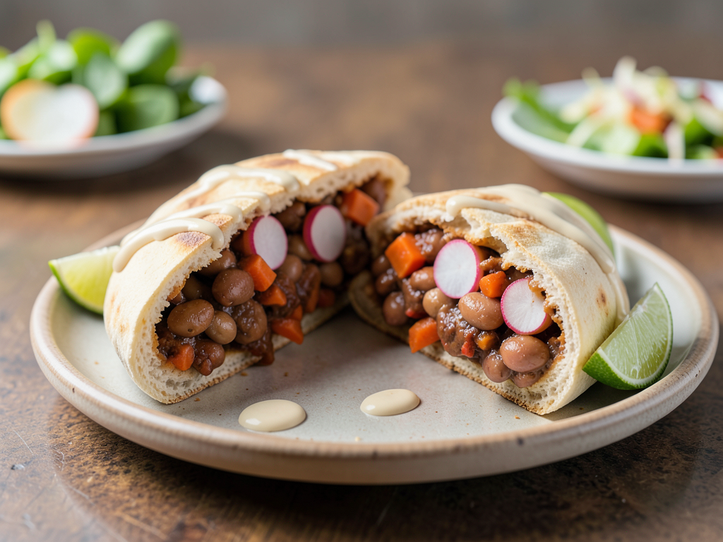 - Carefully open each pita pocket and stuff generously with the smoky chili bean mixture, packing in sliced radishes for that additional crunch.