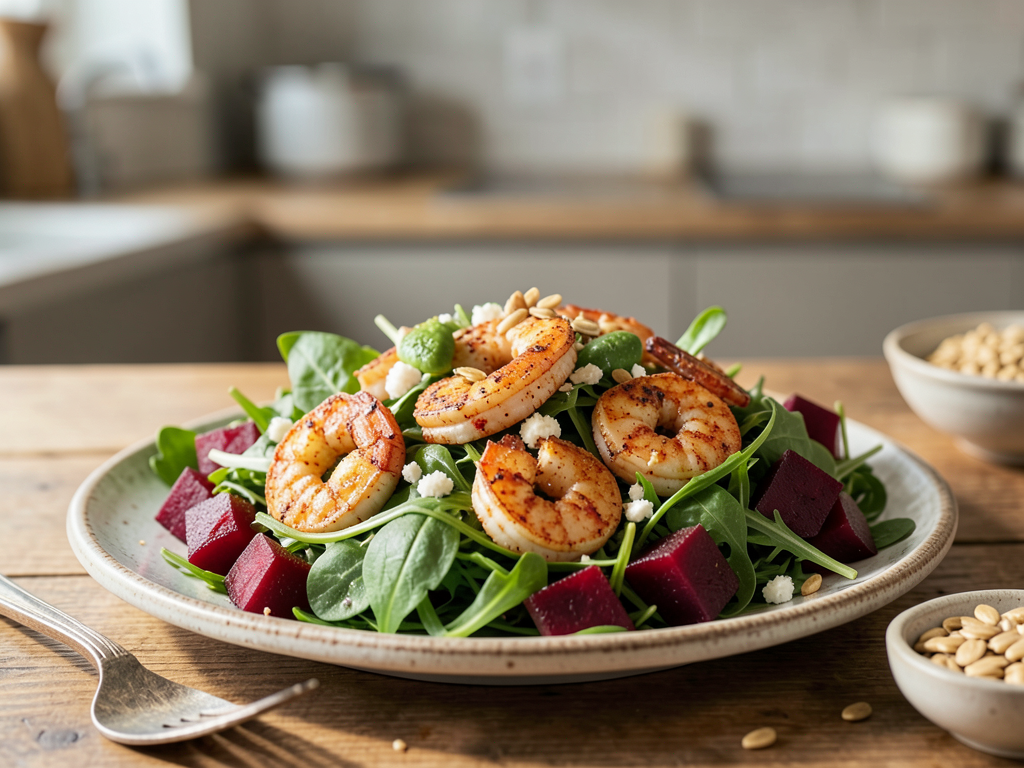 Smoky Chili Shrimp Salad with Beets and Spinach