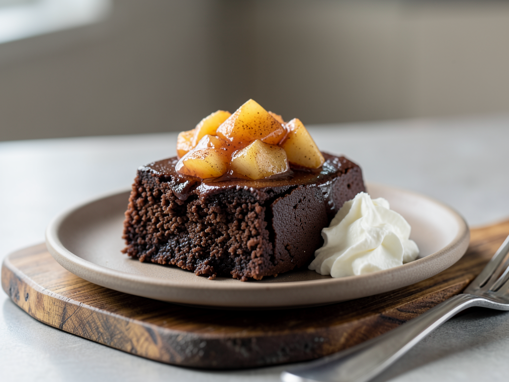 Soft-Baked Chocolate Pudding with Apple Compote