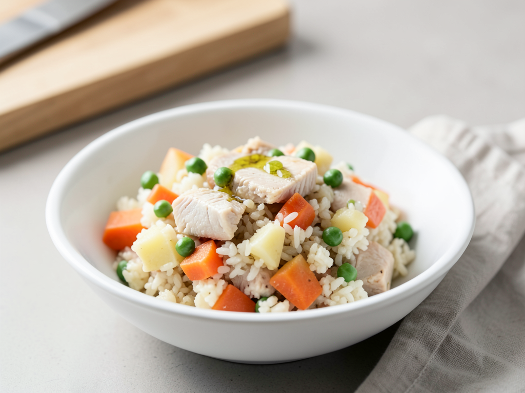 - Begin by chopping the chicken breast into small pieces. Dice the carrot and potato into similar-sized cubes for even cooking.