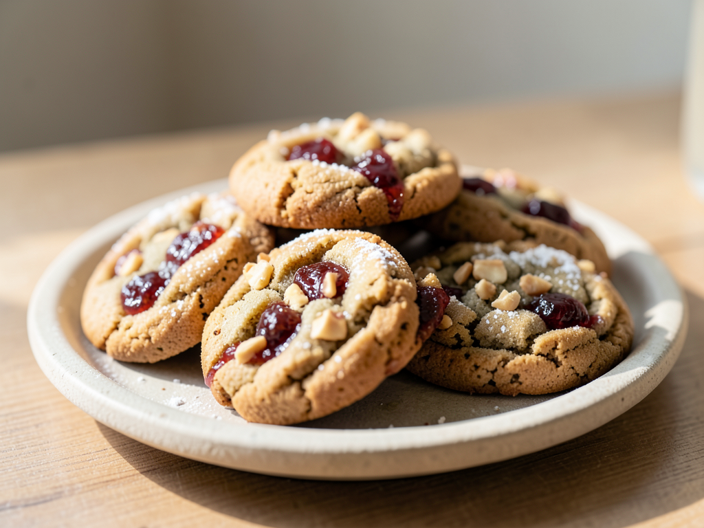 - Once cooled, spread a generous layer of your chosen fruit jam on top of each cookie. Sprinkle with powdered sugar and chopped nuts if desired.