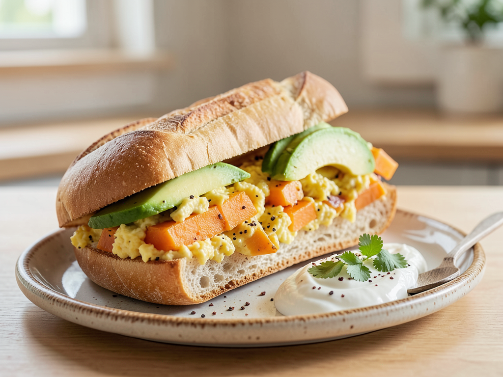- To assemble the sandwiches, spoon the pumpkin and egg mixture generously onto the bottom half of each roll. Top with avocado slices.