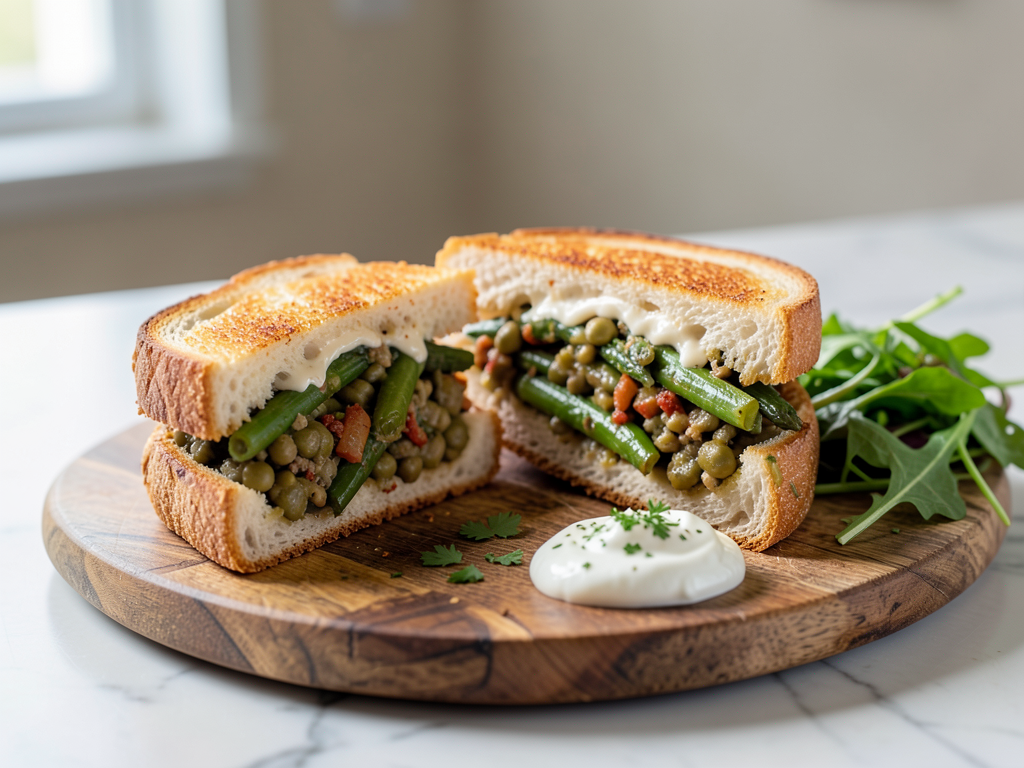 - On a slice of lactose-free bread, spread a layer of tahini, then top with the lentil-vegetable mixture. Cover with another slice of bread.