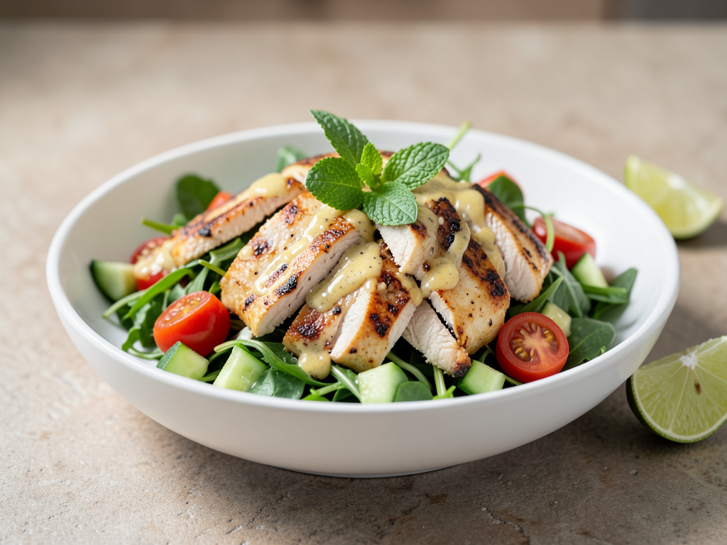 Tahini Lemon Chicken Salad with Arugula and Spinach