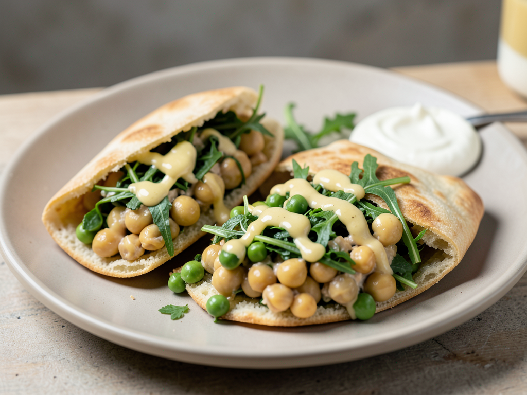 Tahini Lemon Chickpeas Stuffed Pita with Arugula