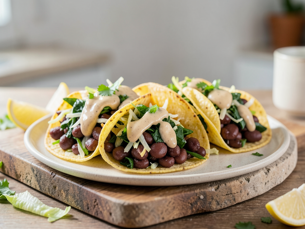Tahini Lemon Kidney Beans Tacos with Cabbage