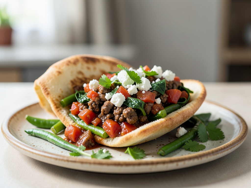 - To serve, spoon the beef mixture generously over each pita, then sprinkle with chopped cilantro (and feta cheese if using). Enjoy warm!