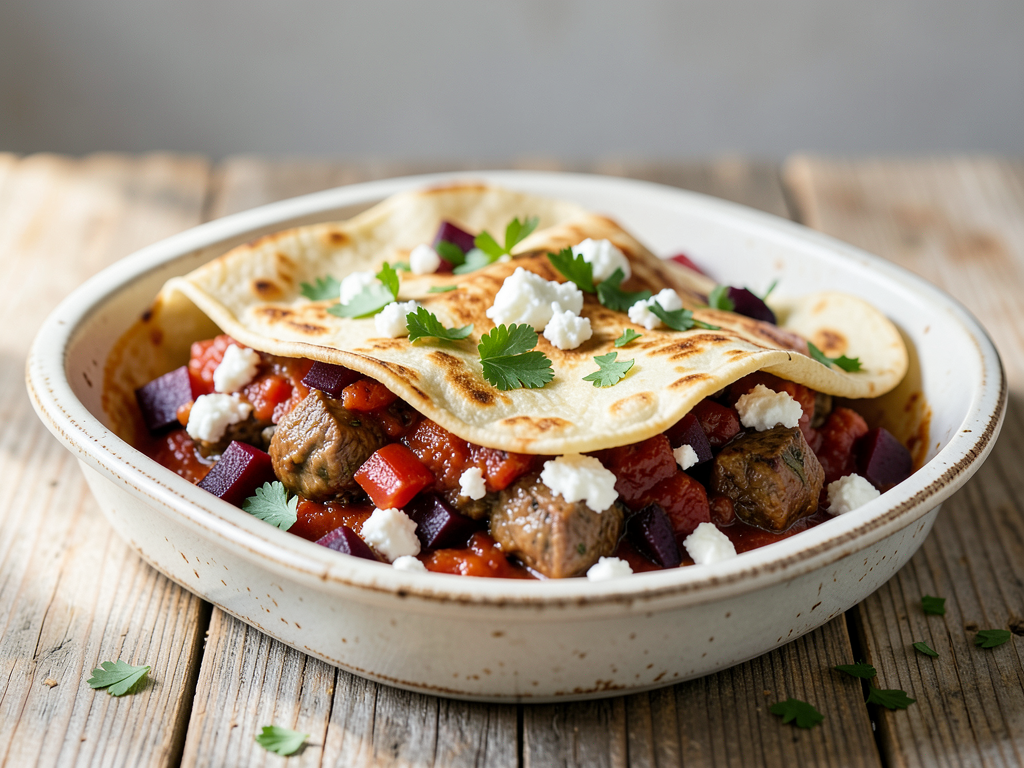 Dive into the rich flavors of tender lamb braised in a delightful tomato and basil sauce, paired beautifully with earthy beets! These hearty ingredients are layered over warm tortillas, making for a cozy, satisfying meal. Don't hesitate to make it your own by adding spices or using different herbs! Perfect for an inviting autumn dinner.