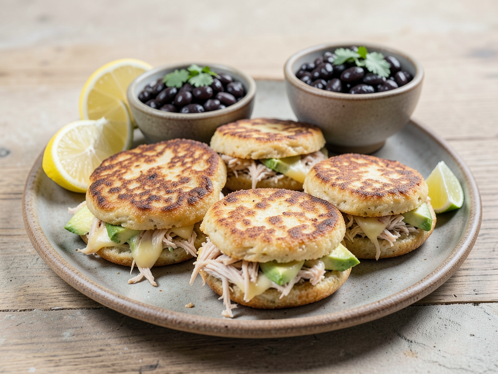 Make your weeknight dinners easy yet flavorful with this Caracas Arepas Plate! These delicious cornmeal patties are packed with versatility and can be filled with your favorite ingredients. Typically enjoyed in Caracas, Venezuela, this dish is paired with zesty lemon wedges and simple sides that complement the arepas splendidly. So, feel free to experiment with fillings and sides. Let's dive into a meal that’s perfect for any evening!
